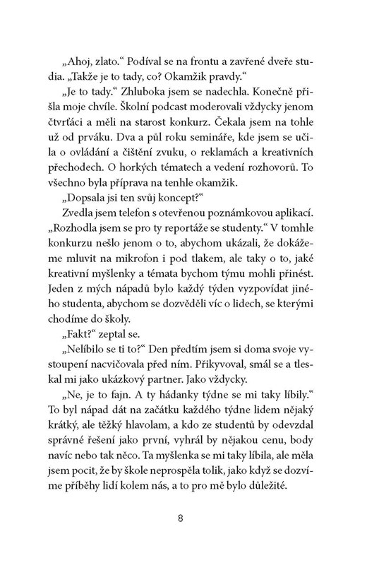 Sedmnáctiletá Finley už roky sní o tom, že získá místo ve školním podcastovém týmu. Jenže její fotbalem posedlý přítel Jensen jí ukradne nápad i vysněnou pozici. Finley se rozhodne, že se pomstí a vezme mu jeho místo ve fotbalovém týmu. A tak si na trénink přizve jeho namyšleného, ale okouzlujícího rivala Thea. Brzy však zjišťuje, že ji k Theovi nepřitahuje jen touha po odvetě. Je opravdová láska víc než perfektní pomsta?