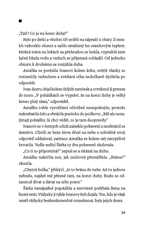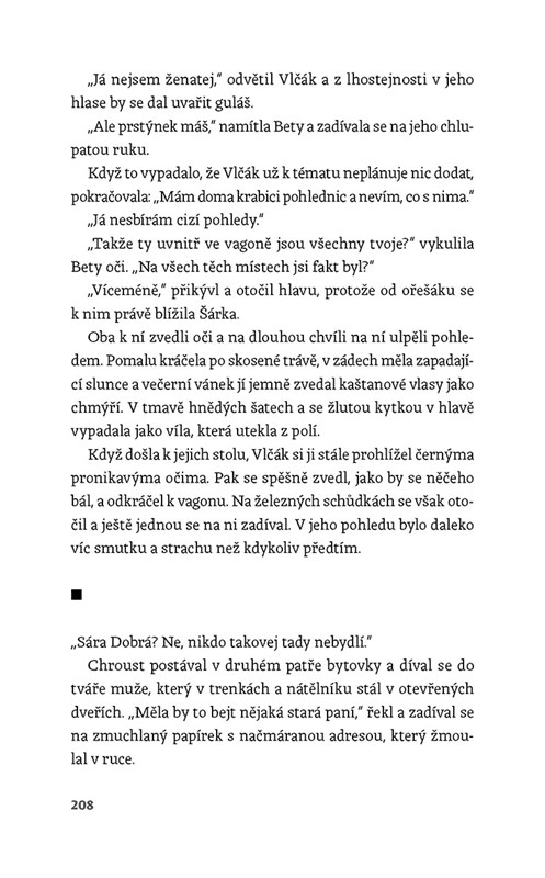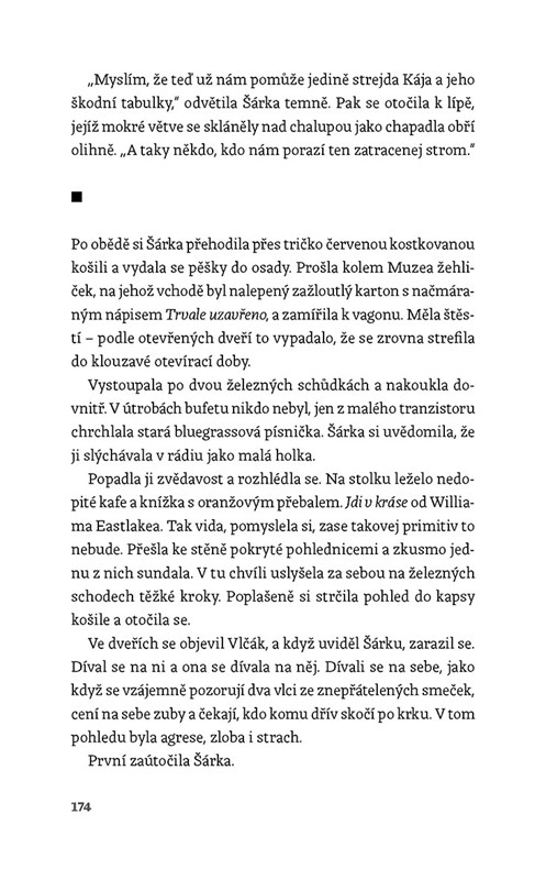 Když člověku zemře polovina duše, zbývají mu dvě možnosti – buď se zastavit, nebo jít dál. Šárka se rozhodne pro druhou variantu a spolu se sedmiletou dcerou a psem se přestěhuje z města na šumavskou samotu u česko-německých hranic. Doufá, že nový začátek v romantické divočině jí pomůže vyrovnat se s manželovou smrtí. Brzy však zjišťuje, že tahle krajina vlků není pro bojácné ovečky a že stará chalupa, nevraživí starousedlíci a tajemné šumavské hvozdy budou pro osamělou ženskou přece jen tvrdý oříšek... Tereza Herzogová uzavírá volnou trilogii o osudu mladé spisovatelky.