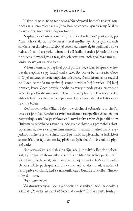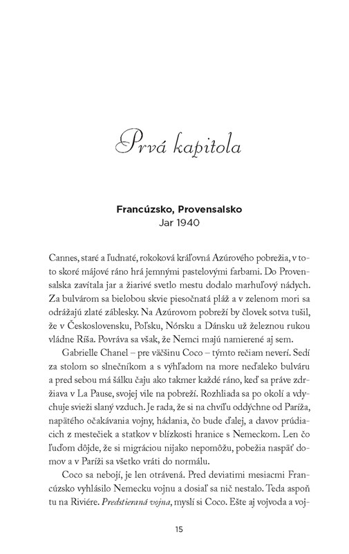 Kráľovná Paríža, nový román oceňovanej autorky Pamely Binnings Ewenovej, na základe nedávno odhalených vojenských záznamov farbisto vykresľuje skrytý život Coco Chanel počas štyroch rokov nacistickej okupácie Paríža uprostred druhej svetovej vojny.