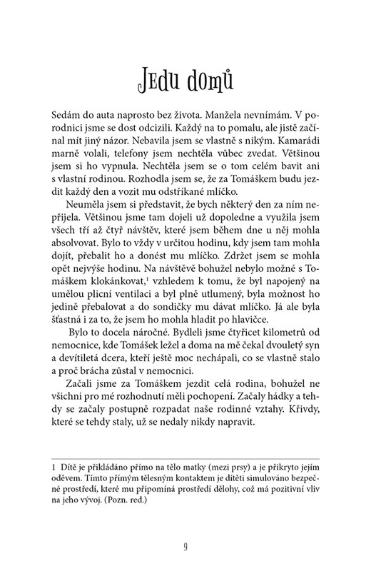 Kniha je také takovým malým světlem pro všechny, kterým se narodí nemocné dítě a ocitnou se v úplné tmě. Věřte, že v okamžiku, kdy se vám zdá všechno naprosto beznadějné, je lepší než proklínat tmu, zapálit alespoň jednu svíčku.