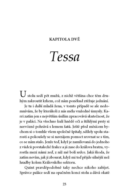 Království Kandala se jen těsně vyhnulo katastrofě, ale napětí nepolevuje. Zatímco král Harristan hledá nový způsob vlády, Tessa a princ Corrick se snaží spojit rebely s královským dvorem. Když začne docházet život zachraňující elixír a z cizí říše přijde nečekaná nabídka, vydávají se na nebezpečnou cestu, která prověří jejich loajalitu, odvahu i křehké city – a otázku, zda Kandalu může zachránit něco jiného než revoluce.
