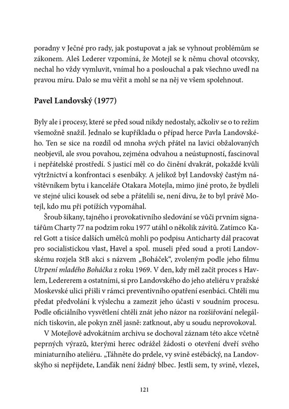 Otakar Motejl byl člověk, který stál u zrodu české moderní advokacie a zásadním způsobem se podílel na péči o ochranu lidských práv. Byl ministrem spravedlnosti, prvním předsedou porevolučního Nejvyššího soudu ČR a stejně tak i historicky prvním Ochráncem lidských práv. Ještě před rokem 1989 však působil jako obhájce disidentů, včetně proslulého soudu s Plastic People of the Universe. Přečtěte si o jeho fascinujícím životě a poznejte zblízka charismatického muže s neodmyslitelnou cigaretou, který je dodnes zmiňován jako vzor právníka a byl zvolen právníkem století v anketě Lidových novin.
