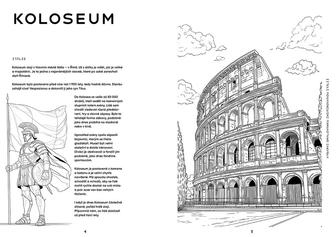 Objevte nejslavnější světové stavby v omalovánkách! Tato kniha zavede děti od 7 let do světa architektury a představí jim ikonické stavby, jako jsou Eiffelova věž, římské koloseum, chrám Sagrada Família, nejvyšší budova světa Burj Khalifa, památník Stonehenge a mnoho dalších. Každá stránka obsahuje ilustraci stavby k vybarvení i zajímavé informace o jejím vzniku a umístění. Děti tak rozvíjejí svou kreativitu a zároveň se zábavnou formou seznamují s dějinami architektury i zeměpisem.