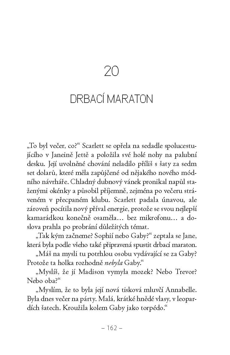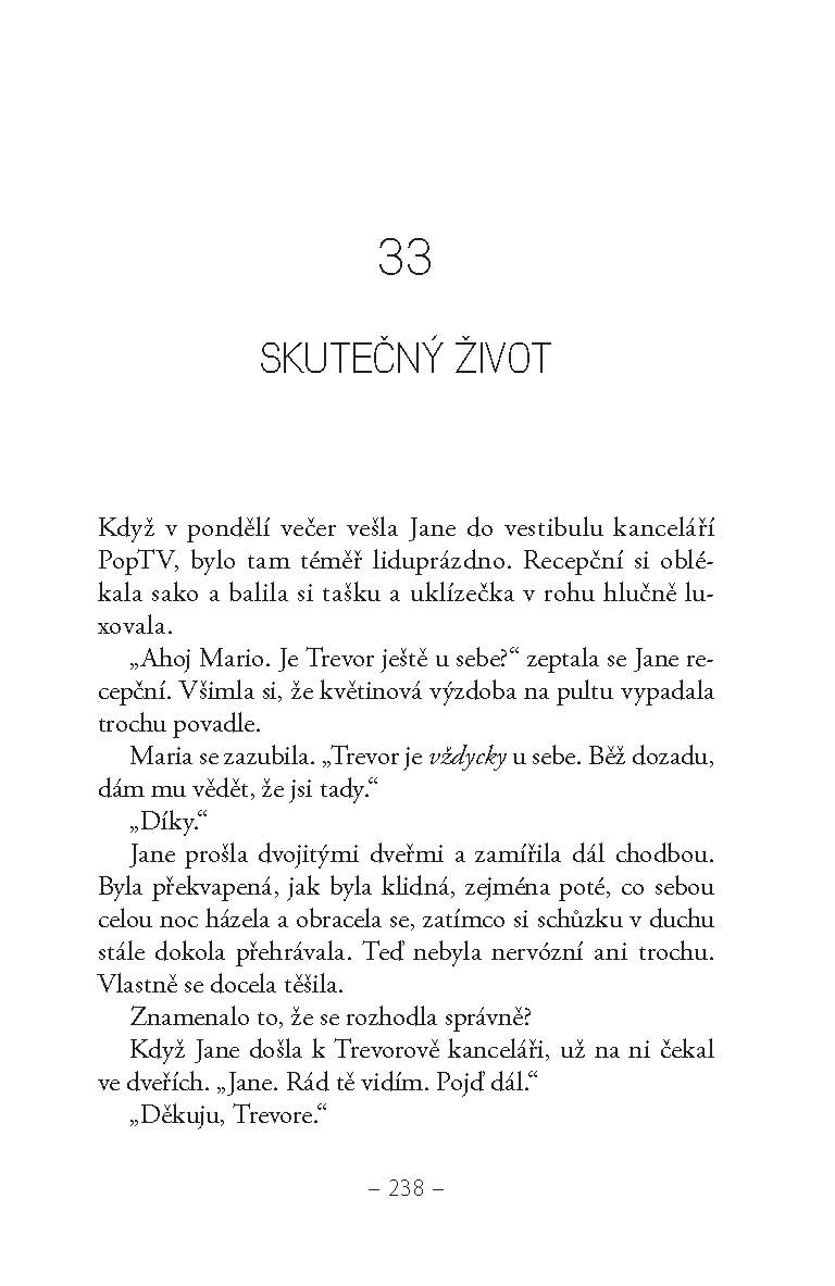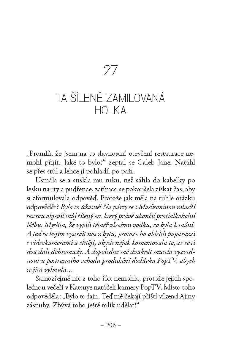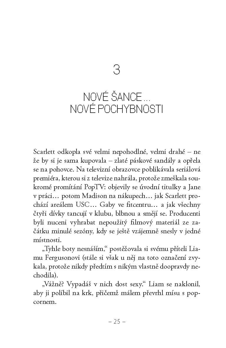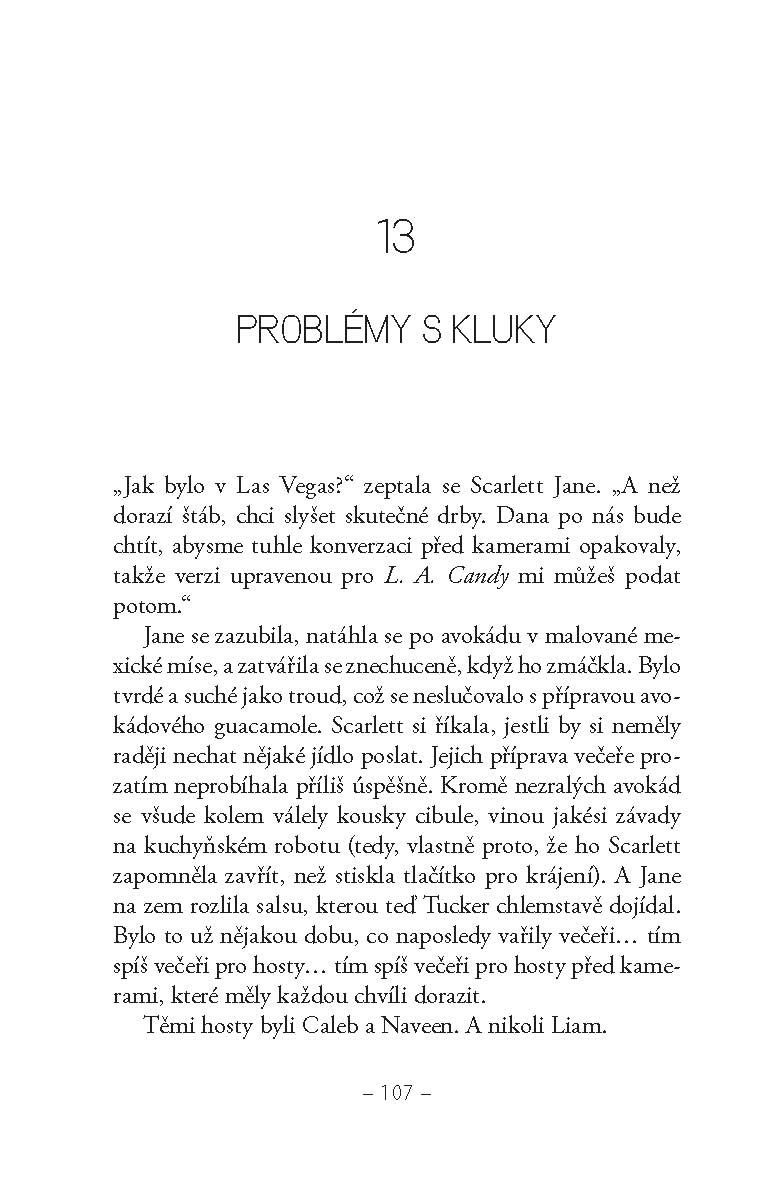 V závěrečné knize losangeleské trilogie je Jane Robertsová už opravdová celebrita – má VIP manýry, luxusní šaty a vrhá hvězdné pohledy. Také má za sebou bulvární skandály, falešné kamarády a vytrvalé paparazzi v zádech. Po první sezóně v reality show se něčemu přiučila a teď se pokouší obklopovat jen lidmi, o kterých ví, že ji mají rádi pro ni samotnou… a rozhodne se dát si oddech od kluků, protože ti jí jen přidělávají problémy. Pak se ale objeví Caleb, její kluk ze střední školy a Braden, tajná láska z L. A., jeden hezčí a milejší než druhý, takže připomenout si pravidlo o žádných klucích, stojí Jane dost úsilí.