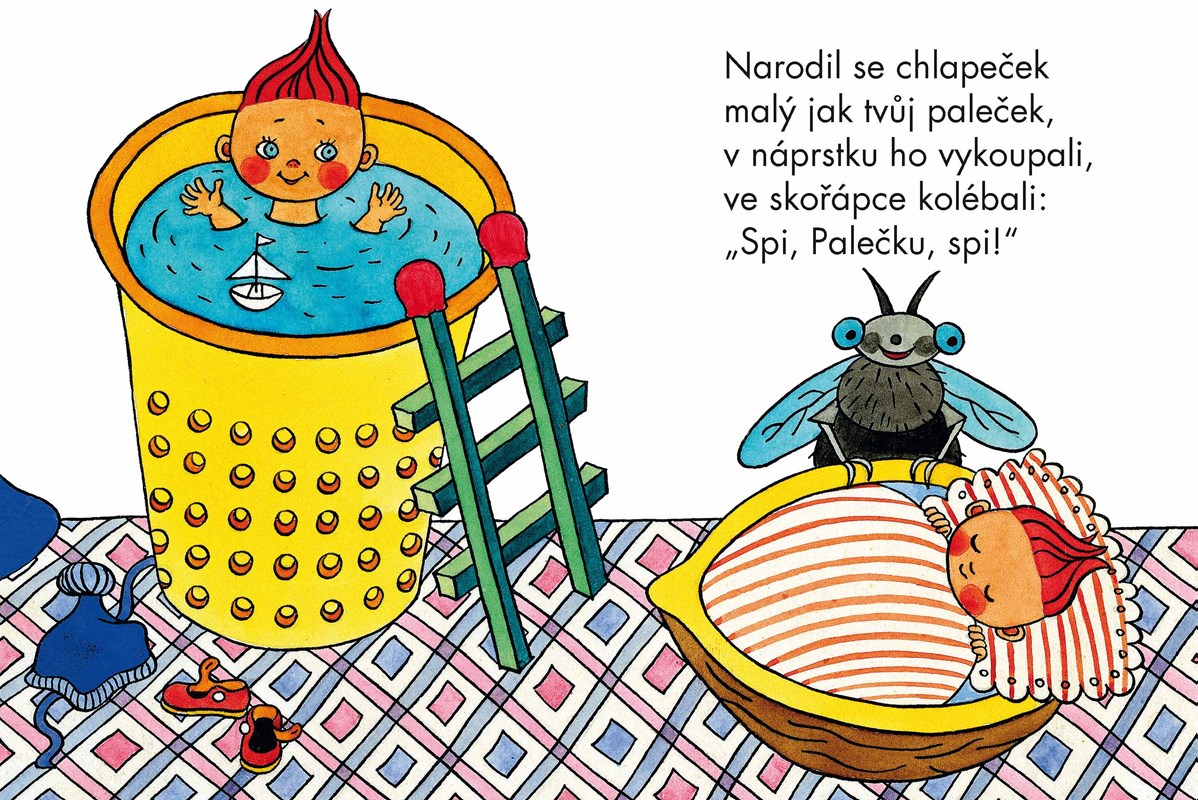 Pohádka přebásněná klasikem české poezie je doprovázena půvabnými obrázky oblíbené ilustrátorky. Hezké vyprávění je o chlapečkovi, který byl tak malinký, že se koupal v náprstku, spal v ořechové skořápce a snídal tři máčky. Zkrátka byl to Paleček!