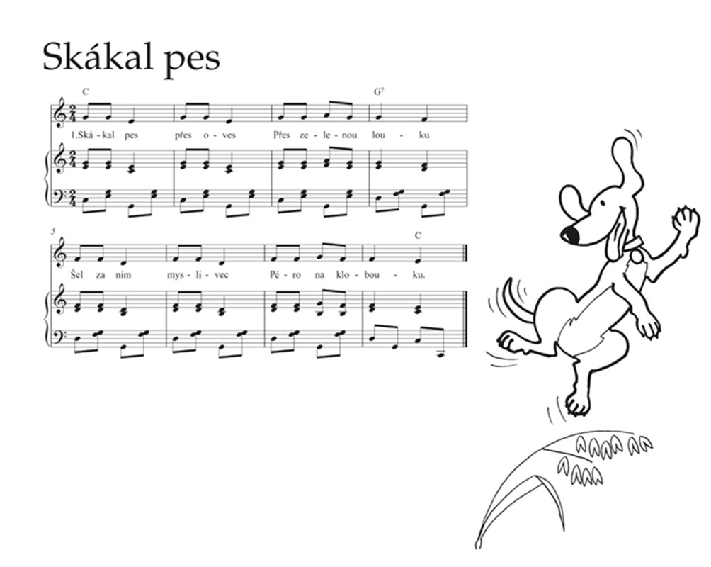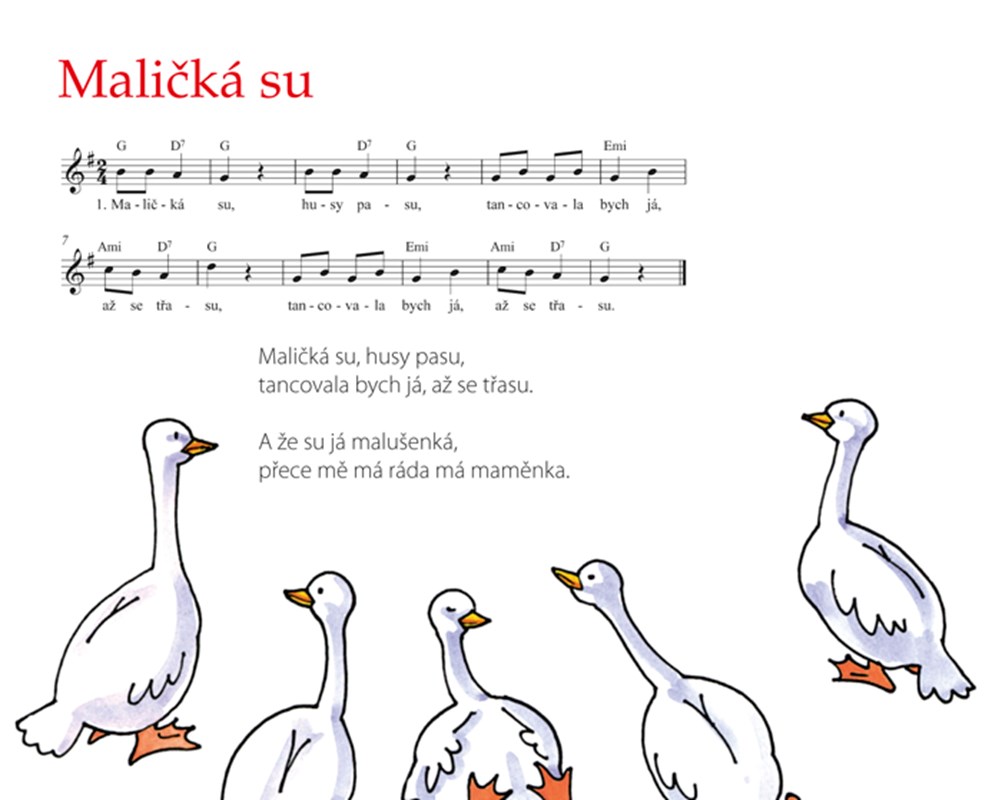Písničku si poslechnu, ukáži, co se v ní děje, vymaluji obrázek, naučím se slova, zazpívám i přehraji melodii!