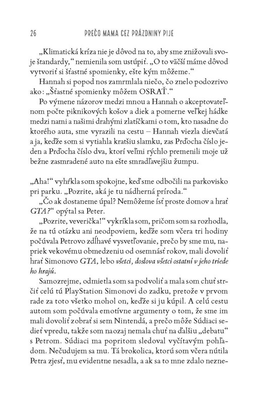 Lenže vysnívané dokonalé leto opäť stroskotá na útesoch bezútešnej reality. S malými pekelnými šelmami, ktoré treba každý deň udržať nažive, a navyše bez Hannah, ktorá sa odpratala až kamsi do Južnej Afriky s tou naničhodnou mláčkou lasičej šťanky Danom, keď sa jej dovolenka snov premení na nočnú moru, dokáže prežiť jedine vďaka dobre vychladenému ružovému vínu.