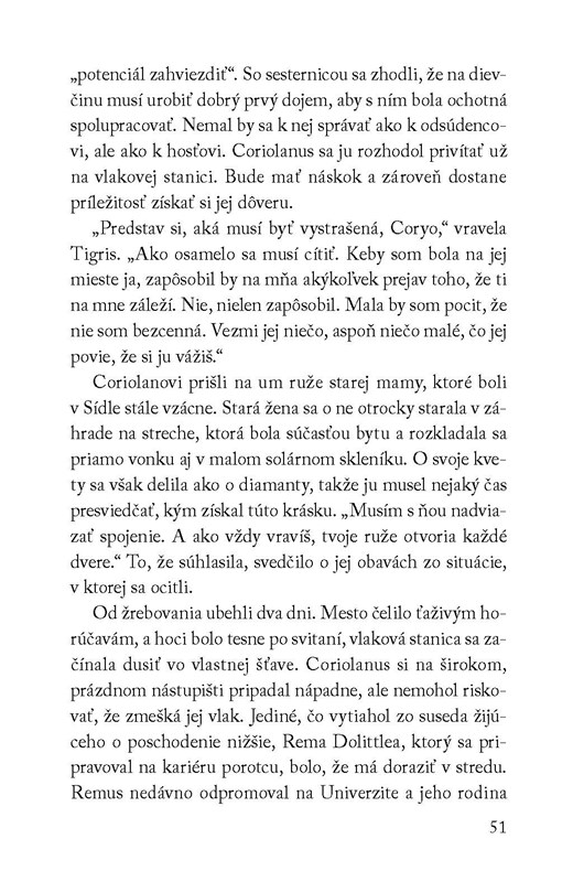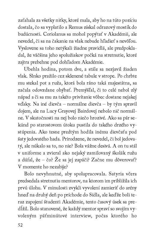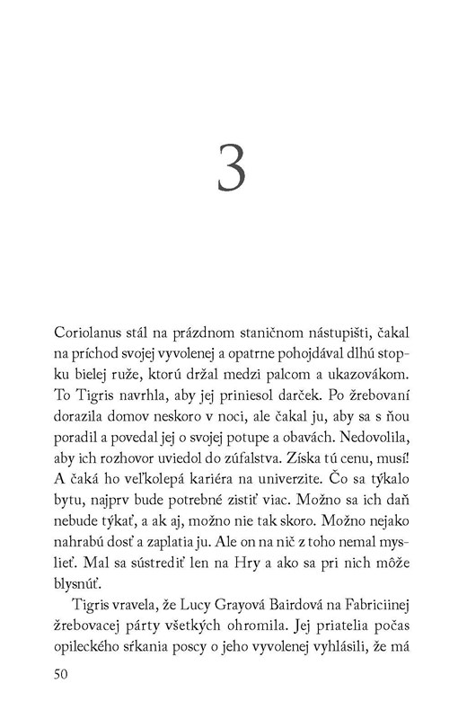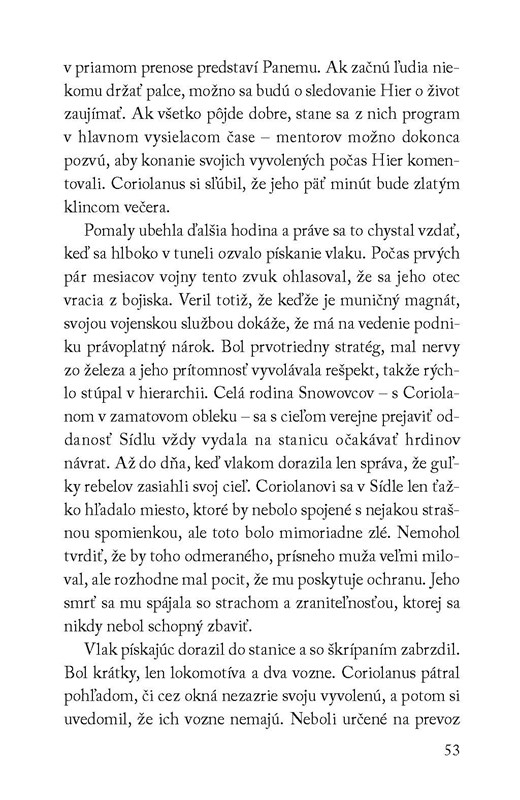 Ich osudy sú teraz úzko prepojené a Coriolanus vie, že každé jedno rozhodnutie môže znamenať úspech alebo zlyhanie, víťazstvo alebo prehru. V aréne to bude boj na život a na smrť. Mimo arény sa v Coriolanovi prebúdzajú city k jeho zverenkyni.
