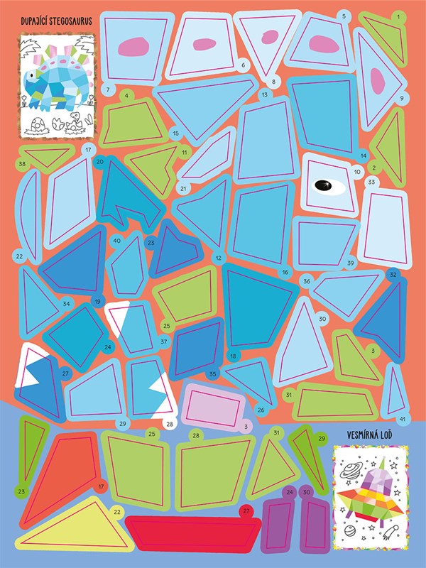Samolepkové knížky z této edice obsahují 12 obrázků, ze kterých si můžeš vytvořit vlastní umělecké dílo. Nejprve z přiložených samolepkových dílků sestav hlavní motiv, třeba dinosaura, příšerku nebo vesmírné plavidlo, a zbytek obrázku dotvoř pomocí pastelek. Tím ale zábava ještě nekončí. V knížce tě čeká i řada poutavých úkolů, jako bludiště, obrázkové sudoku, hledání rozdílů nebo počítání pomíchaných věcí, u kterých se uplatní nejen šikovné ruce, ale i chytrá hlavička.