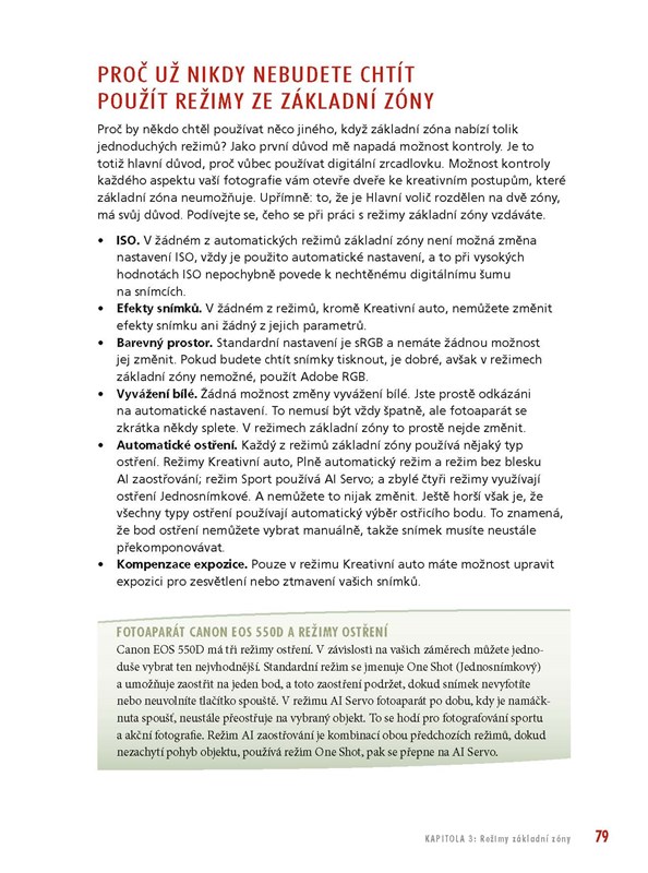 Využijte celý potenciál svého fotoaparátu a zachyťte s jeho pomocí jedinečné okamžiky. Autor vám na řadě příkladů nejenom vysvětlí, kdy a jaký režim, expoziční parametr nebo funkci máte upravit, ale věnuje se i samotnému smyslu fotografování. S knihou tak nezískáte pouze další návod k přístroji, ale užitečného průvodce, který je připraven poradit vám s naprostou většinou fotografických situací. S jeho pomocí pak bude snadné vytvářet skvělé snímky kdykoli a kdekoli.