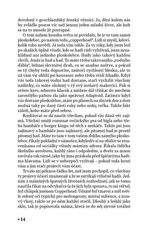 Uznávaná autorka Barbara Kingsolver napsala fascinující a důležitý román o mladém hrdinovi a jeho nezapomenutelné cestě k dospělosti. Na úpatí jižních Apalačských hor se opuštěné mladé matce narodí v obytném přívěsu chlapec, kterému začnou říkat Demon Copperhead. Po otci dostal do vínku zrzavé vlasy, srší sarkasmem a dokáže přežít všechny životní útrapy. Svým prořízlým jazykem Demon autenticky vypráví o svých zkušenostech s pěstounskou péčí, dětskou prací, podfinancovanými školami, sportovními úspěchy, závislostmi, zničujícími láskami a zdrcujícími ztrátami. Charles Dickens napsal před mnoha lety román David Copperfield, v němž vylíčil své zkušenosti s životem v chudobě a problémy, které to způsobovalo dětem v jeho společenských kruzích. Se stejnými problémy se potýkáme i dnes. Abyste Demona Copperheada pochopili, nemusíte ovšem číst Dickense. Barbara Kingsolver si vzala za inspiraci jeho hněv a vášeň, ale především s ním sdílí jeho víru v sílu dobrého příběhu. Demon Copperhead je hlasem nové generace ztracených chlapců a dětí, kteří se narodili do krásných a prokletých míst, jež nemohou opustit.