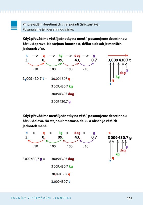 Kniha ukazuje možnosti, jak si znázornit a tím i snadněji zapamatovat a převádět jednotky délky, hmotnosti, obsahu, objemu a času. Dítě si pak může vybrat tu, která mu nejvíc vyhovuje nebo si vymyslí vlastní pomůcku.