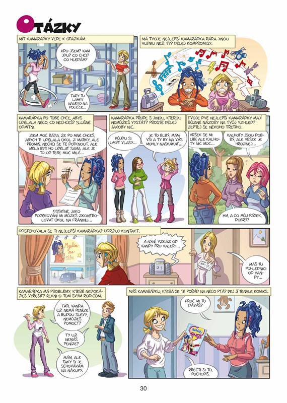 Chceš se dozvědět všechno o svých kamarádkách, a ještě se u toho zasmát? Od A jako Ahoj až po Z jako Zpovědi přes Lži, Usmíření a Tajnosti. Rady, vysvětlení, tipy, otázky i odpovědi, to vše v novém zábavném komiksu.