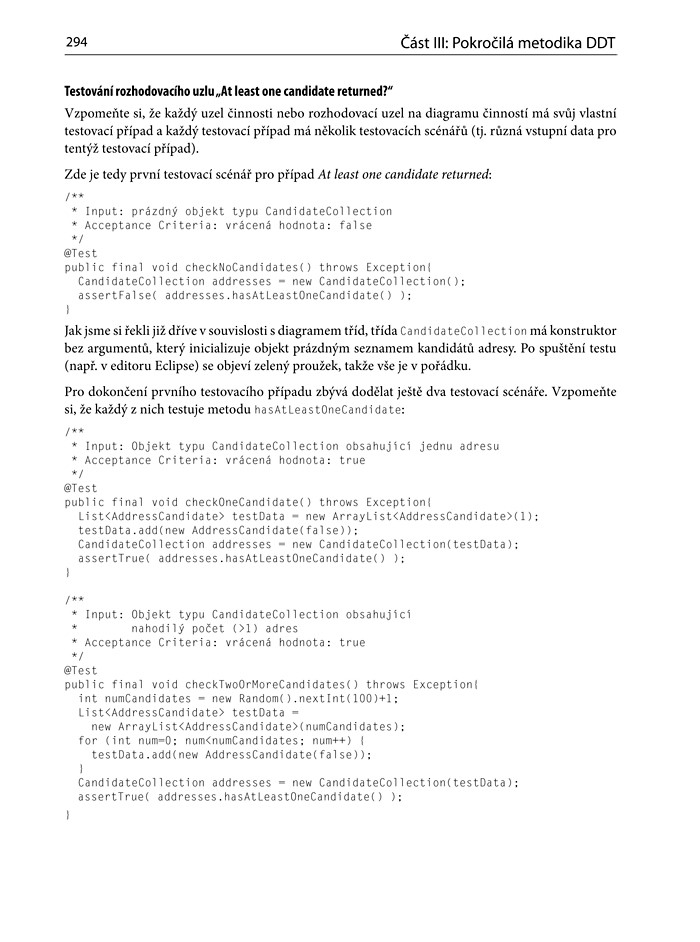 Dvojice autorů vás v dvanácti kapitolách provede metodikou testování řízeného návrhem (Design-Driven Testing – DDT). Ta využívá návrh pro přesné vymezení míst, kde je nutné založit kritické testy. Seznámíte se s osvědčeným procesem vývoje softwaru, který se zaměřuje na tvorbu a údržbu testů jednotek a testů přijatelnosti založených a řízených návrhem. V úvodních kapitolách se dozvíte také o rozdílech mezi touto metodikou a známějším programováním řízeným testy (Test-Driven Development – TDD).