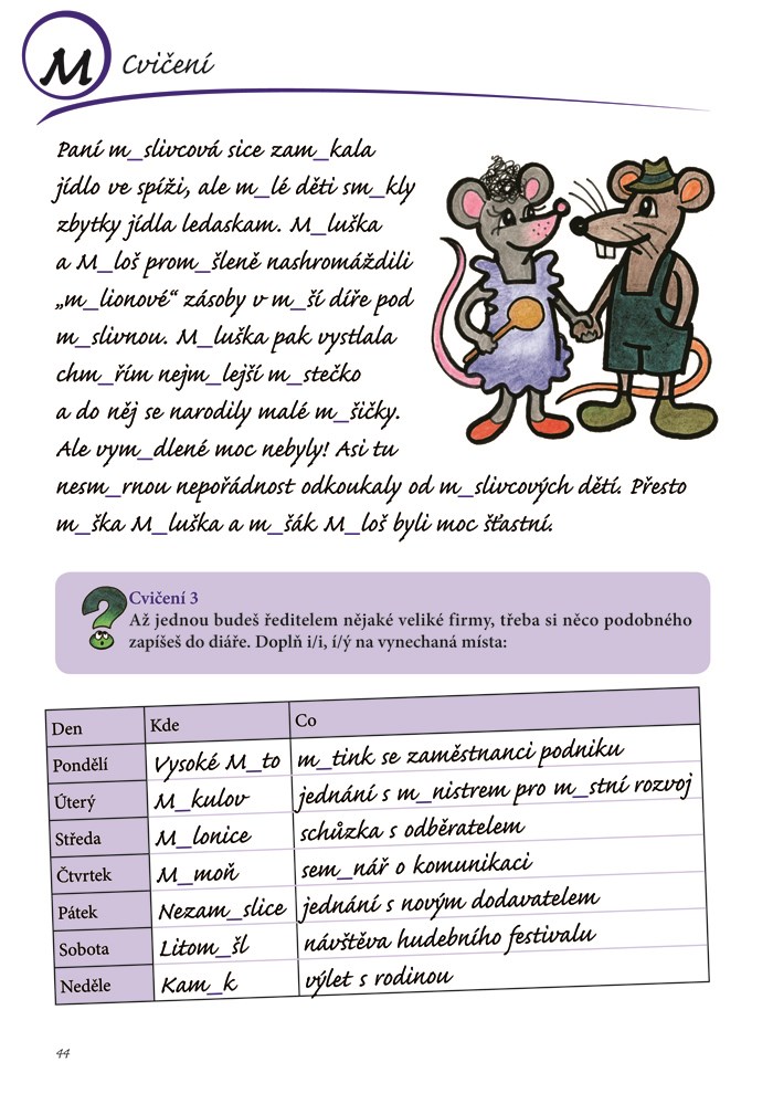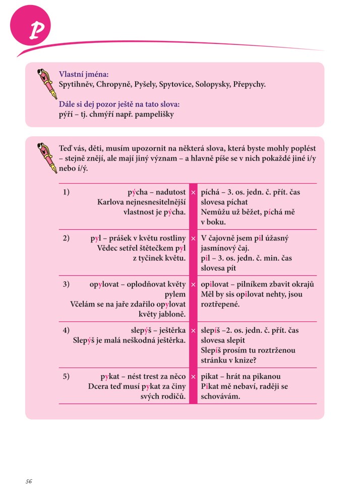 • konkrétní příklady užití vyjmenovaných slov ve větách