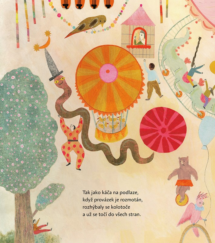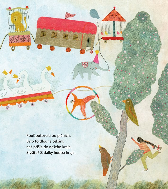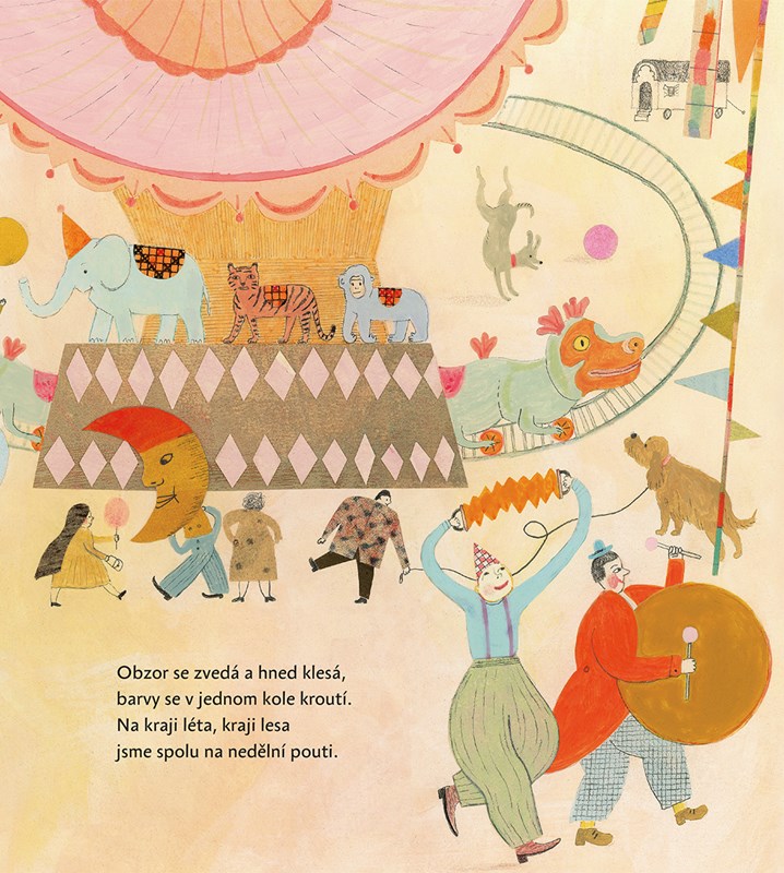 Jeden den od svítání až do tmy na starosvětské vesnické pouti. Kolotoče, artisté, střelnice, perníková srdce a žasnoucí děti. Hravě zasněné verše Robina Krále a jemné, přitom plnokrevné ilustrace Andrey Tachezy společně vytvořily v této výpravné knížce magické prostředí pouti, jakou už dnes jinak potkáte snad jen ve snu či ve vzpomínce.