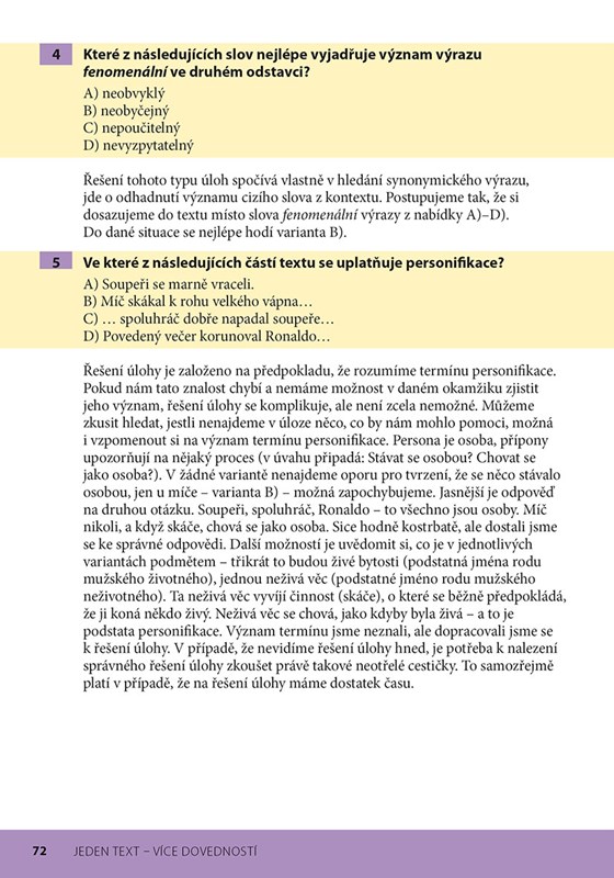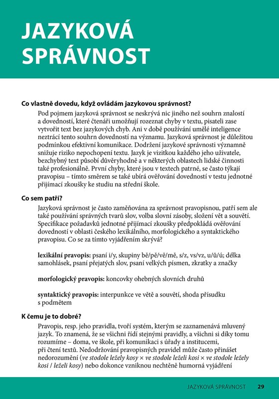 Kniha obsahuje v několika tematicky různých kapitolách úlohy různé obtížnosti. Je užitečným nástrojem, který může pomoci v překonání obav z textů a úloh často vnímaných jako těžké, zejména v rámci testů přijímací zkoušky ke studiu na střední škole.