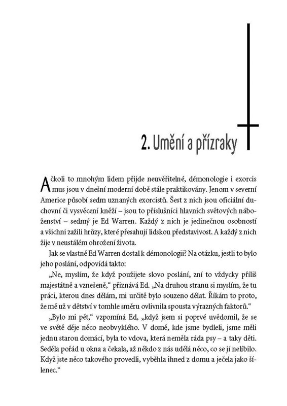 Levitující věci, démoni, záhadné hlasy… Typické strašidelné prvky. Ale pozor, tohle není film. Tohle se opravdu stalo! Znáte posedlou panenku Annabelle? A co se vlastně opravdu stalo ve strašidelném domě v Amityville? Začtěte se do skutečných případů, které za svou kariéru „lovců duchů“ řešili manželé Warrenovi, lidé, pro něž se hrůzyplná prostředí a paranormální jevy staly denní rutinou. Čeká vás hned čtrnáct příběhů plných duchů, strachu a děsů, z nichž některé inspirovaly hollywoodské filmaře k natočení dnes už kultovních hororů. Budete si muset dělat pauzy a na čtení o samotě, jen u lampičky, radši rovnou zapomeňte…
