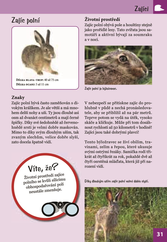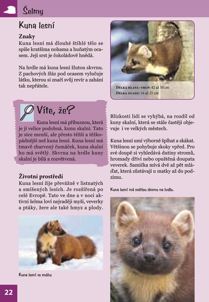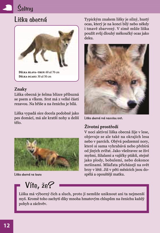 V přírodě je tolik věcí k objevování! Víte, podle čeho se pozná kočka divoká, jak dlouhé mohou být jezevčí nory a jakým nepravdám o slepýších někteří lidé stále věří? A dokážete podle stop poznat, jaké zvíře tudy šlo? Tato praktická knížka o přírodě předává zábavnou formou malým objevitelům informace o zvířatech v lese a na louce. Naučí vás zvířata nejen rozlišovat, ale prozradí vám i mnoho zajímavého o jejich chování a prostředí, v němž žijí. Formát knihy vybízí k tomu, abyste si ji přibalili s sebou na výlet. Poznávejte přírodu! Staňte se jejími kamarády.