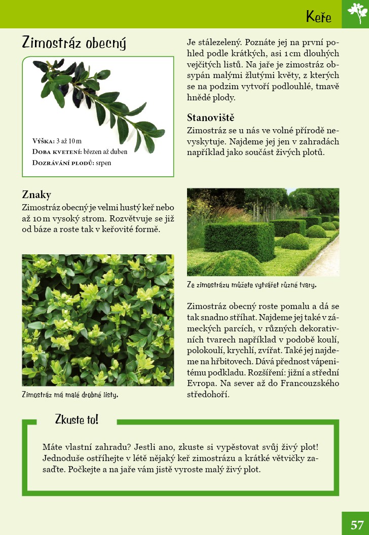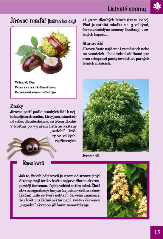 V přírodě je tolik věcí k objevování! Víte, jak vypadají například semena javoru, jakého věku se mohou dožít modříny a kde roste dřišťál? A co kdybyste si vytvořili týpí z vrbového proutí, takový perfektní úkryt pro vaše hry? Tato praktická knížka o přírodě předává zábavnou formou malým objevitelům informace o světě stromů a keřů. Naučí vás je nejen určovat, ale prozradí i mnoho zajímavého o jejich vlastnostech a stanovištích. Formát knihy vybízí k tomu, abyste si ji přibalili s sebou na výlet. Poznávejte přírodu! Staňte se jejími kamarády.