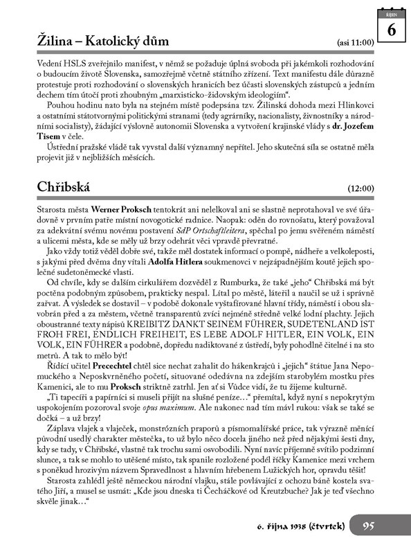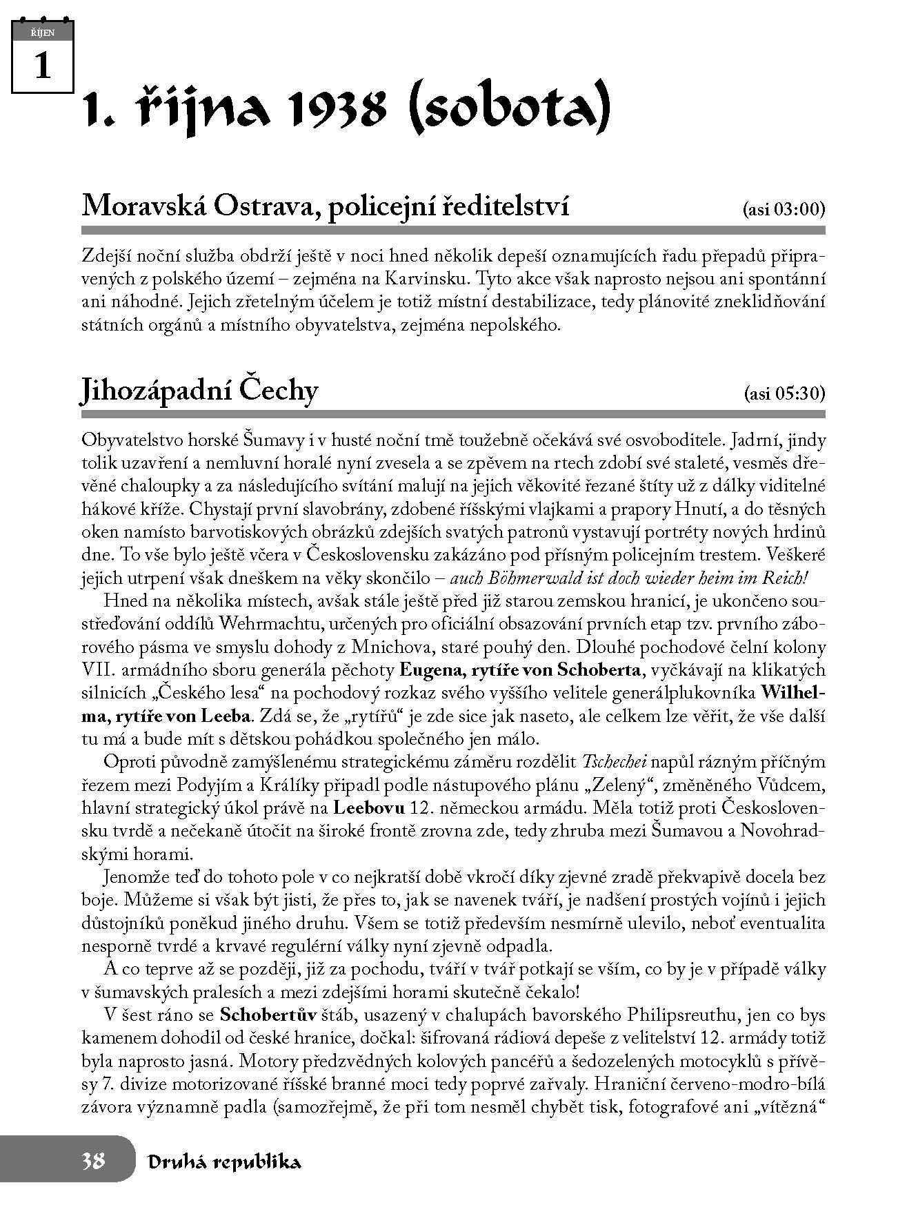 Co následovalo těsně poté, co byla podepsána mnichovská dohoda? Jaké byly další osudy českého státu vydaného na pospas nacistickému Německu? Poznejte dramatické události i jejich aktéry den po dni, takřka hodinu po hodině v této temné chvíli české historie. Publikace z pera zkušeného autora přináší jednotlivé historické momenty podané poutavou formou, která vám detailně představí, jak se rodila druhá republika od konce září do 10. října 1938, kdy se naplňovala mnichovská zrada. V knize nahlédnete do zákulisí diplomatických salonů, jak události prožívali přední čeští i zahraniční politici, ale zjistíte také, jak situaci vnímali například příslušníci čs. armády připravení bránit svou zemi.