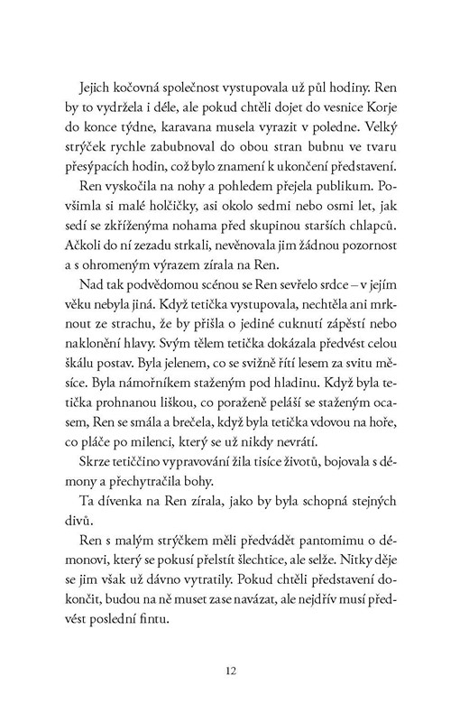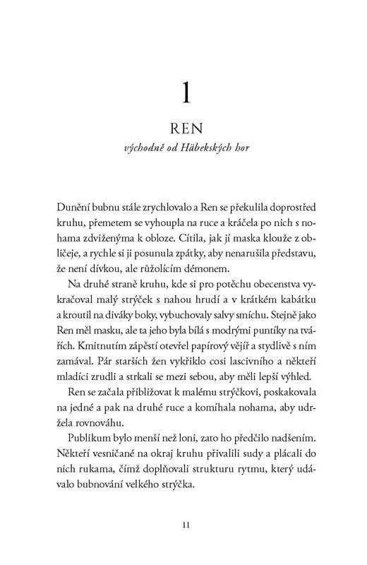 Mezitím daleko na východě Ren, nadšená akrobatka, cestuje se svou adoptivní rodinou a vystupuje po menších i větších vesnicích. Ale všechno se změní v okamžiku, kdy na vesnici během oslav zaútočí hrozivý démon. Z Ren v okamžiku strachu a hněvu vytryskne stříbrné světlo – síla, kterou tajila už od dětství – a zabije tuto nestvůru. Stejně se jí však nepodaří ochránit svou rodinu před drtivou ztrátou ani zachránit milovaného strýčka před zraněním. Teď je odhodlaná zabránit tomu, aby podlehl otravě, a tak vyrazí daleko přes hory, odkud nestvůra přišla. Právě odtamtud před deseti lety sama Ren utekla.