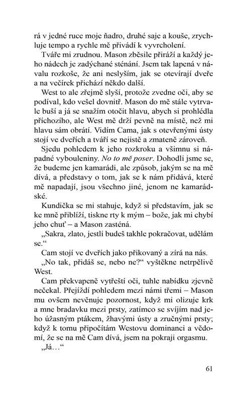 Mou záchranou jsou Mason, West a Beck. Jsou laskaví a trpěliví. Vztah s Camem je pořád odtažitý; snažíme se najít způsob, jak spolu vycházet.