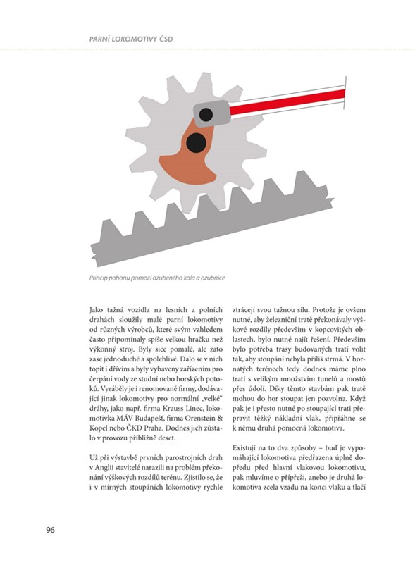 Kniha obsahuje atlas parních lokomotiv ČSD a seznamuje čtenáře s historií parního provozu na našem území, hlavními konstrukčními celky parních lokomotiv, jejich ošetřováním a údržbou, s číselným systémem označování lokomotiv, s parními vozy i speciálními parními lokomotivami. Kniha přináší rovněž zajímavé informace o úzkorozchodných drahách a koněspřežkách, které jsou spojeny s počátkem dějin železniční dopravy.