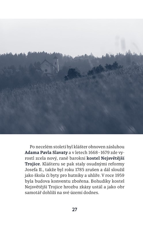 S publicistkou Alenou Binterovou vcházíme do drsné i konejšivé krajiny na pomezí Čech, Moravy a Rakouska, která na každém kroku připomíná dávnou zbožnost svých obyvatel i odhodlání bránit vlastní území. Zdejší lesy ukrývají ostrůvky prastarých balvanů, linii obranných řopíků i stopy železné opony. Cesty protkané kříži a božími muky zvou za tichem kostelů, starých měšťanských domů, opuštěných tratí i k návštěvě místních svérázných srdcařů. Tahle pouť je zároveň osobní kronika znovunabyté síly a naděje.