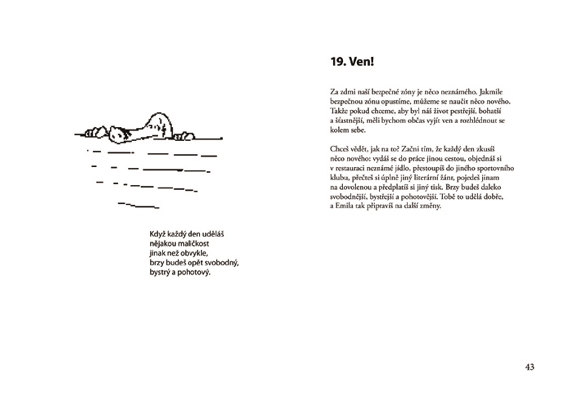 Emil je náš vnitřní našeptávač. Jak zasahuje do našeho života? Dokážeme odolat jeho vábení? Umíme si připustit, že je to on, kdo nás zbytečně tlumí v aktivitě? Přečtěte si více než 100 ilustrovaných rad – a zjistíte, jak vnitřního našeptávače zkrotit!
