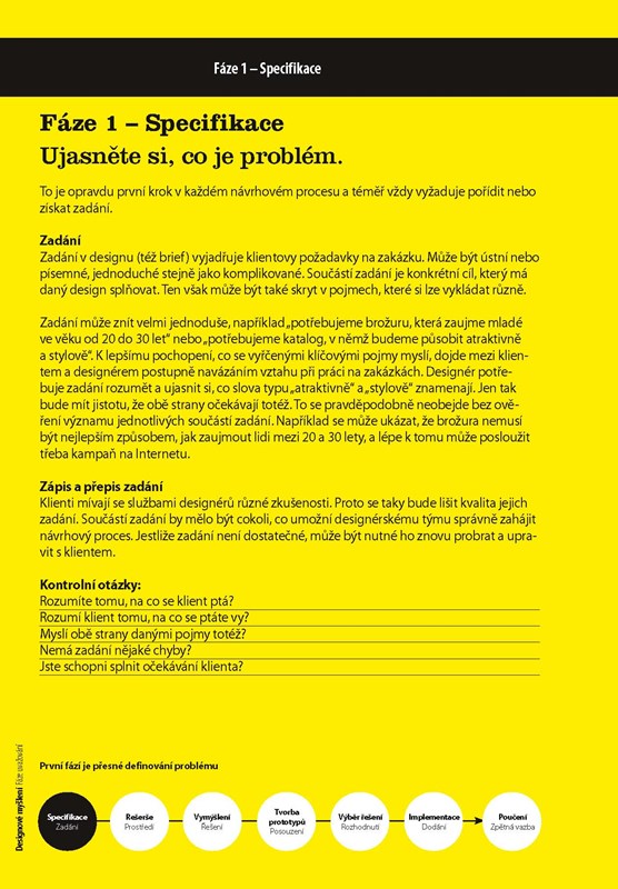 Kniha Grafický design: Designové myšlení ukazuje, že toto umění spočívá především v uvědomění si designu jako cílevědomého procesu, který spěje od ujasněného zadání přes získávání informací o prostředí, generování nápadů a další kroky až ke zvládnuté realizační fázi – a že ani tím celý proces ještě nekončí.