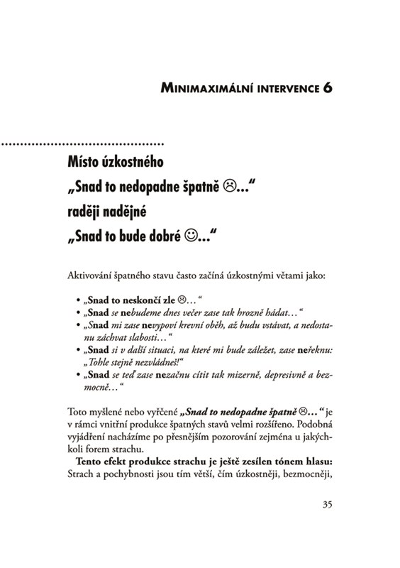 Minimální intervence s maximálním účinkem jsou vhodně volená slova, díky nimž lze s minimální námahou dosáhnout maximálního účinku. Je možno je průběžně začlenit do nejrůznějších forem terapie a poradenství, ale dokáže je využít i každý z nás.