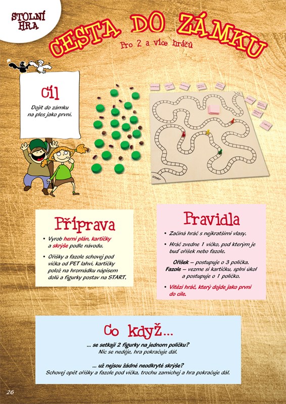 Tato pohádková publikace plná nových nápadů, vtipných ilustrací a barevných fotografií je určena nejen všem čtenářům pohádek, ale i milovníkům stolních her a pohybových aktivit, kteří si už osvojili hry klasické a rádi by si vyzkoušeli zbrusu novou originální zábavu.