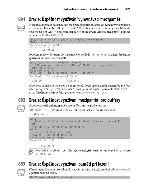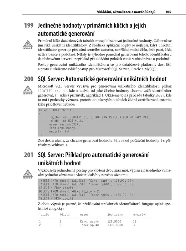Zkušený autor, který patří mezi špičkové experty na problematiku databází, vás v krátkých radách a návodech seznámí nejen se základními operacemi, ale i řadou pokročilých technik, které řeší určitý specifický problém. Najdou zde inspiraci začátečníci, pokročilí, ale i profesionálové, kteří se bez SQL a databází ve svých projektech neobejdou. Jednotlivé rady jsou přehledně členěny do tématických sekcí, nalezení požadované odpovědi je tak dílem okamžiku.