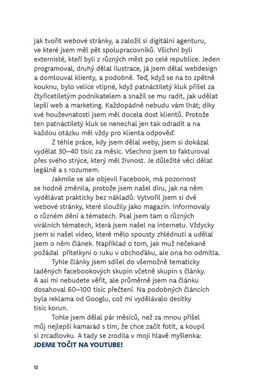 Charlie Šrámek tě vezme do zákulisí světa, který znáš z feedu – a ukáže ti, co za práci se za ním doopravdy skrývá. Od prvních videí na YouTube až po vlastní brand, od přešlapů po virální bomby. Tohle není suchý návod na úspěch, ale syrový příběh člověka, který si všechno odmakal. Chceš tvořit? Budovat značku? Vydělávat na sockách a neztratit přitom hlavu? Tak to je tahle kniha přesně pro tebe. Je o tom, co funguje, co tě semele – i o důvodech, proč autenticita pořád vládne. Reálný content, žádný fake.