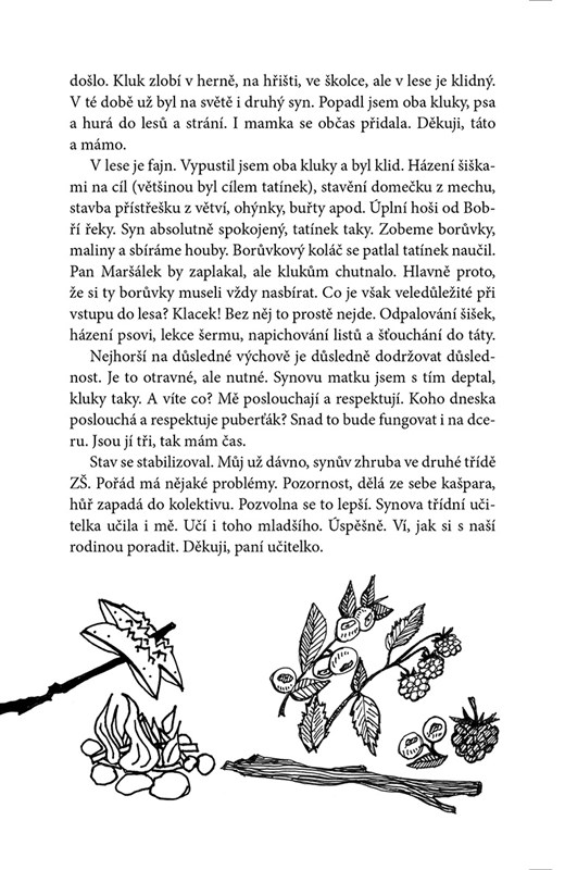Tahle kniha není návod - je to upřímné přiznání chlapa, který si dělá legraci sám ze sebe. A nezapomeňte: dítě v lese potřebuje klacek, spíš než repelent.
