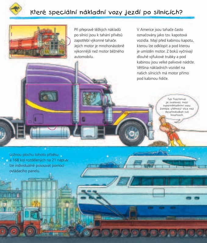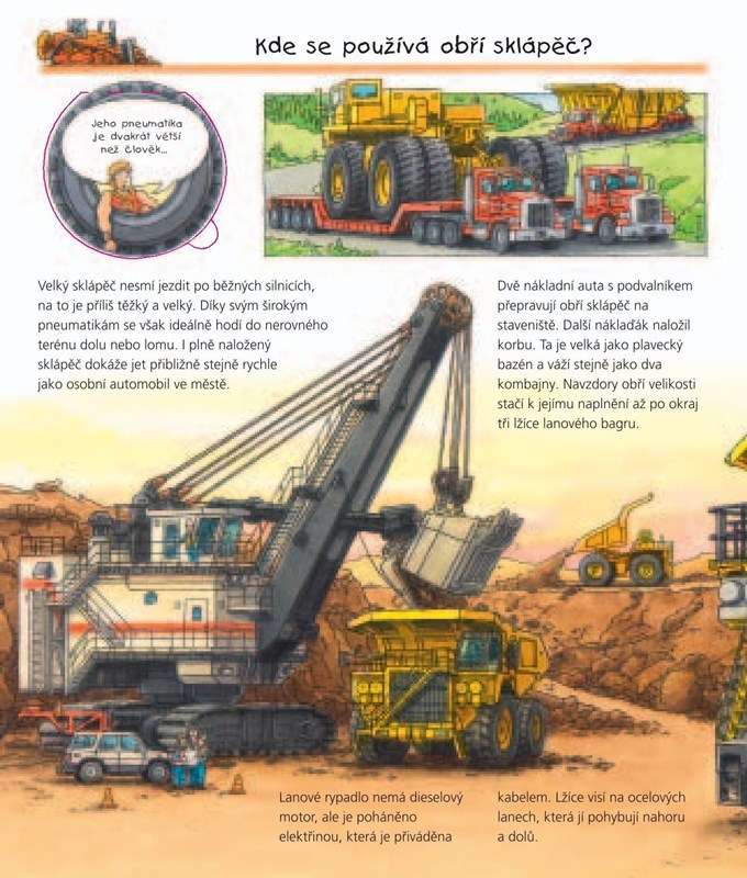Vydej se do světa největších a nejpůsobivějších vozidel na světě. Seznam se s bagry, které mají lžíce o velikosti mrakodrapu, nebo s gigantickými kontejnerový loděmi, které unesou tisíce beden. Prozkoumej obří letadlo Airbus A380 se třemi podlažími a odhal tajemství monster trucků, které si poradí s každou překážkou. V téhle knize tě čeká dobrodružství gigantických rozměrů!