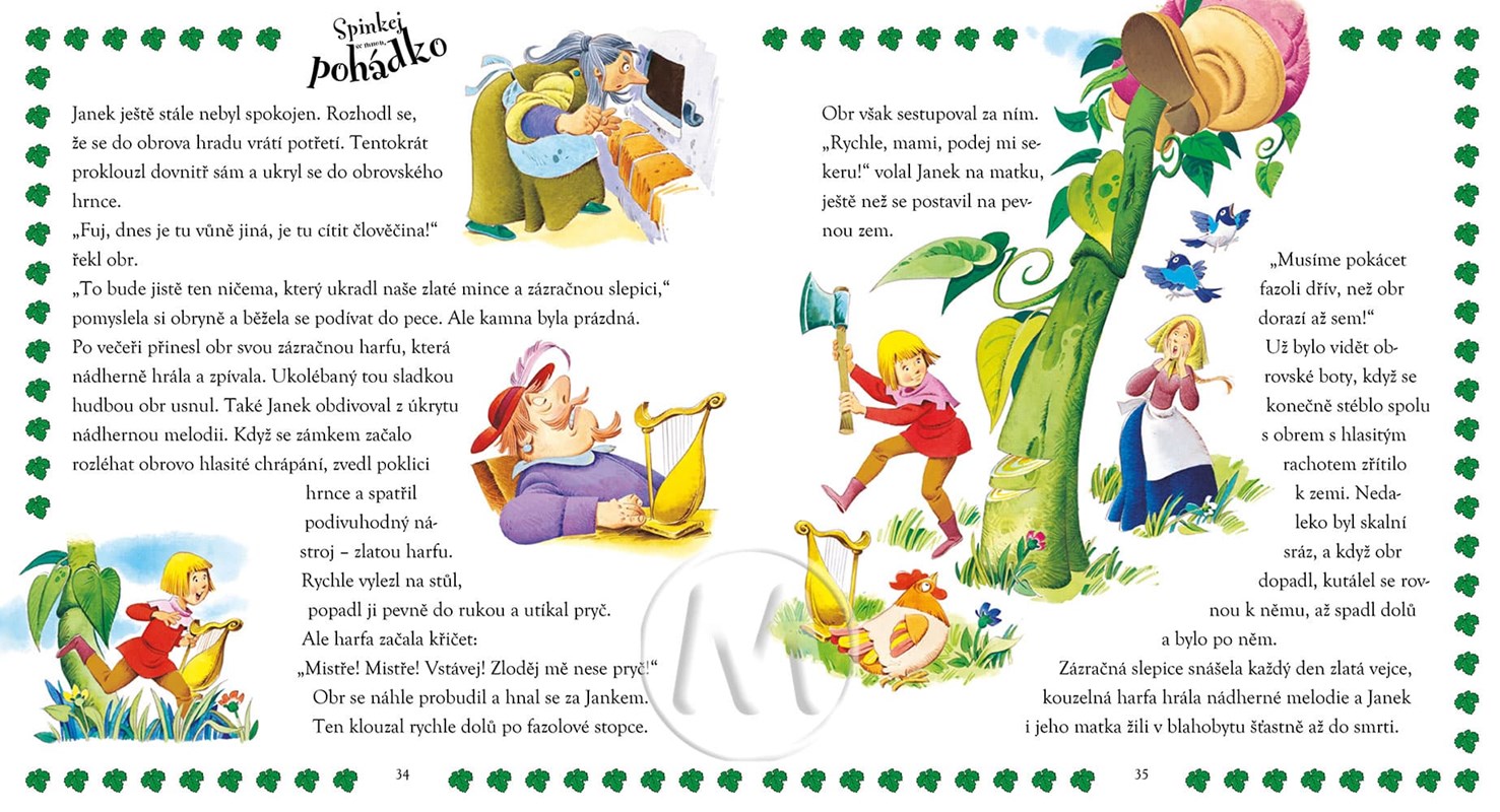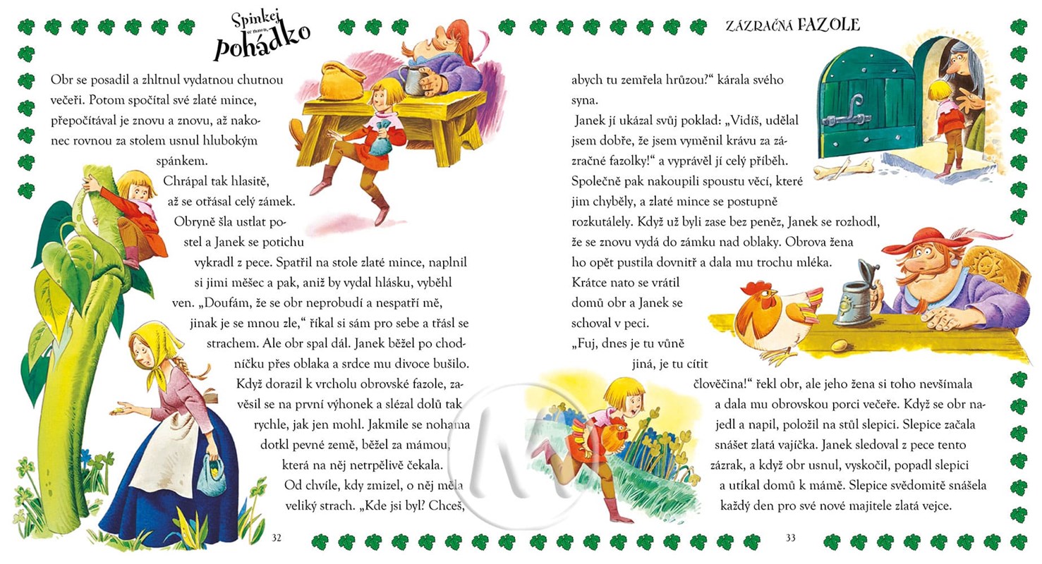 Knížečka ukrývá tyto známé pohádky: Ošklivé káčátko, O perníkové chaloupce, Janek a zázračná fazole, Císařovy nové šaty, Pinocchio, Zlatá husa, Rumpelníček. Autorem nádherných ilustrací je Tony Wolf.