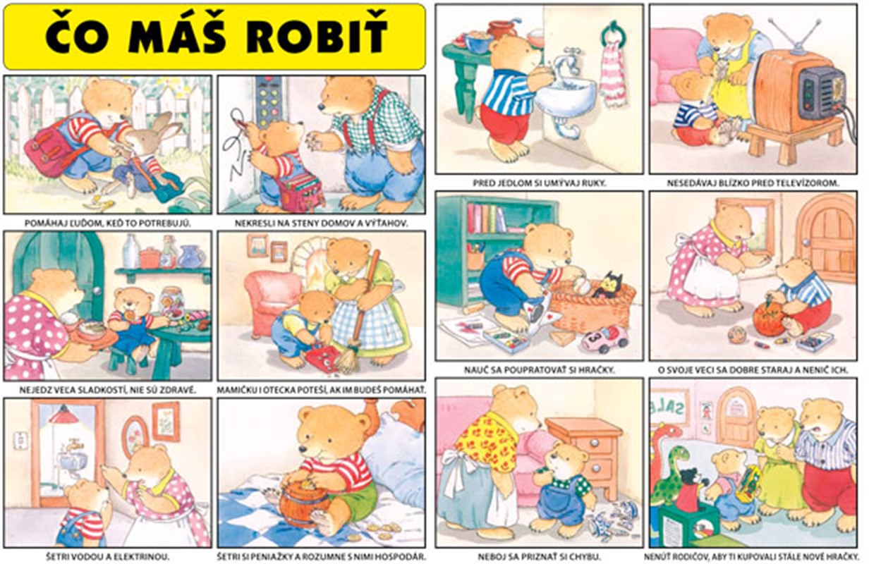 Kniha je určená pre malé deti. Dokáže zaujať aj 3-ročné, ale tak isto aj 5- ročné deti. Nájdu v nej dni v týždni, svoje telo, hudobné nástroje, zásady bezpečnosti, divé zvieratá, život v mori, ale aj druhy zeleniny a ovocia, ale aj dinosaury a hmyz s ktorým sa denne stretáva či už doma alebo vonku. Pestré ilustrácie upútajú každé dieťa.