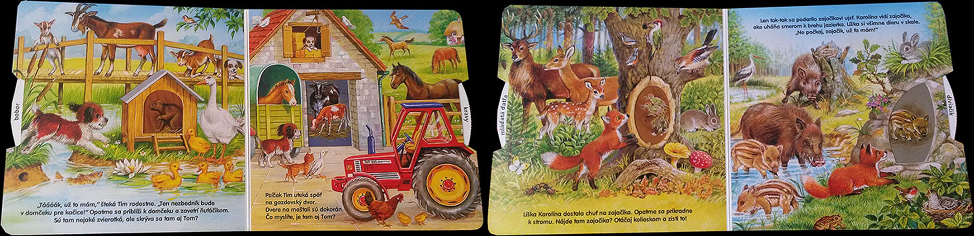 Psíček Tim hľadá svojho bračeka Toma, ktorý sa mu kdesi schoval. Roztopašný Tom behá po celom gazdovstve a Tim sa všade vypytuje. Inde zase líška Karolína dostala chuť na zajačika. Ten je však veľmi šikovný a rýchlo pred líškou uteká a schováva sa. Otáčaj kolieskom a pomôž nájsť psíčkovi Timovi bračeka Toma a zisti, kde všade sa líške Karolíne šikovný zajačik schovával a stále unikal.