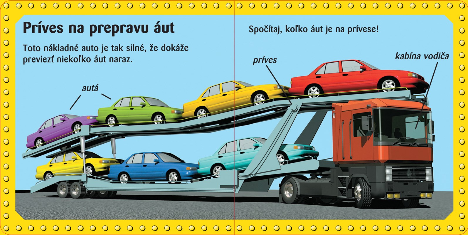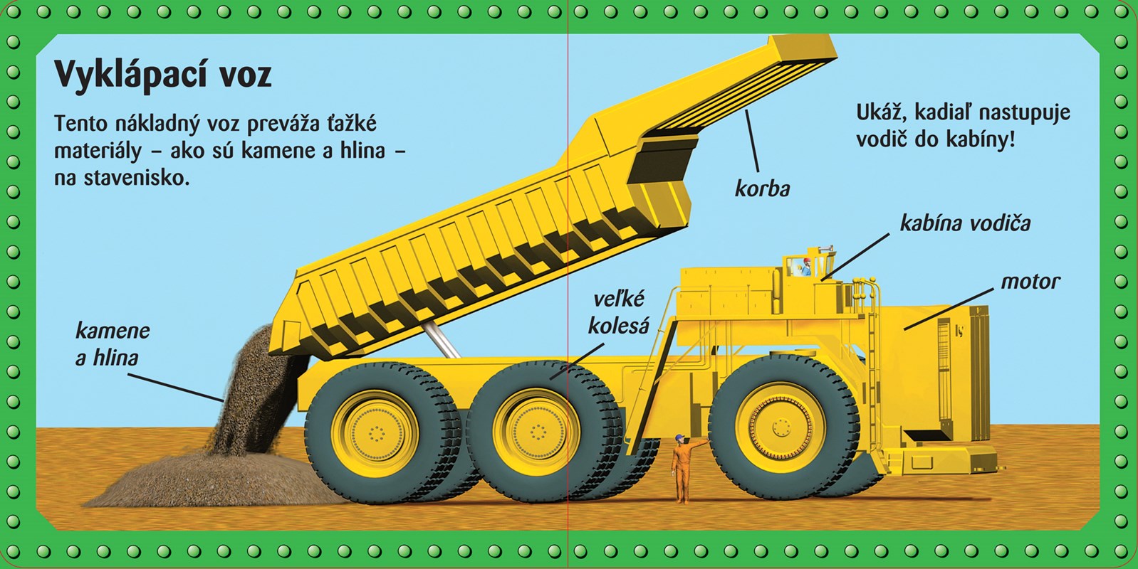 Kamióny, traktory, vlaky a lietadlá! Perfektná téma pre malých čitateľov! Táto malá kniha predstavujúca deťom zaujímavé obrovské stroje má veľké pestré ilustrácie a jednoduchý text.