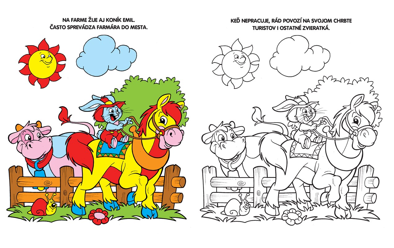 Na starej farme žije veľa rôznych zvieratiek. Poznáte ich všetky? Veselé maľovanky sú skvelou pomôckou na rozvoj a podporu kreativity, zručnosti a sústredenia dieťaťa.