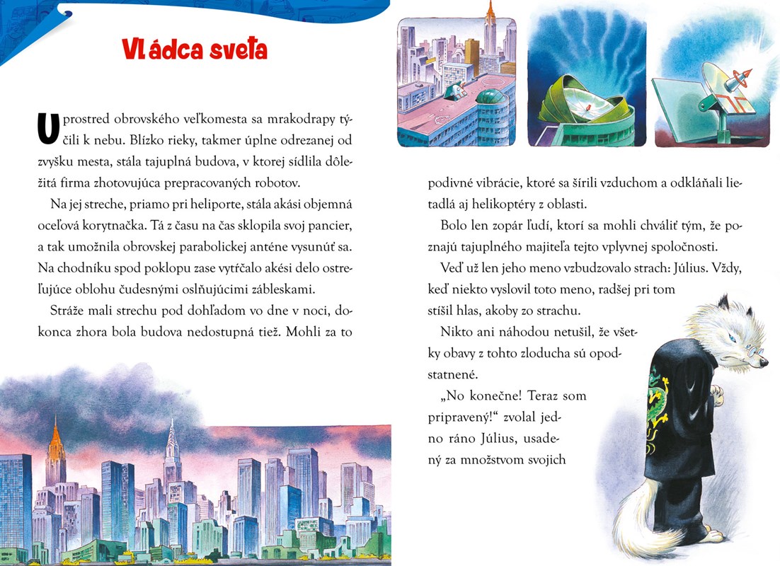 Knižka vám rozpovie príbeh o neuveriteľnom dobrodružstve, ktoré zavedie Tomáša a Terezku, dvoch nerozlučných priateľov, ďaleko od ich pokojnej dedinky. Ocitnú sa medzi mrakodrapmi obrovského veľkomesta, po ktorom sa potĺkajú prapodivné bytosti a kde číha mnoho nástrah. Bude ich priateľstvo dosť silné na to, aby zabránilo zločincom ovládnuť svet? Je len jediný spôsob, ako to zistiť, tak obráť stránku a pusti sa do čítania! 2. kniha zo série Príbehy Tonyho Wolfa