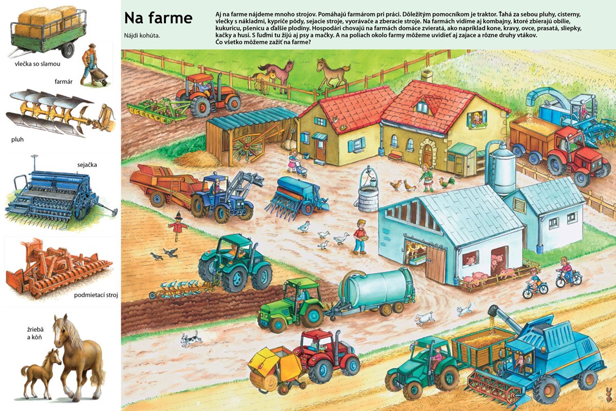 Na čom všetkom ľudia jazdia, lietajú a plávajú? Aké dopravné prostriedky sa používajú pri záchranných akciách, na stavbe a farme? To sa všetko dozvieš v tejto krásnej knižke.