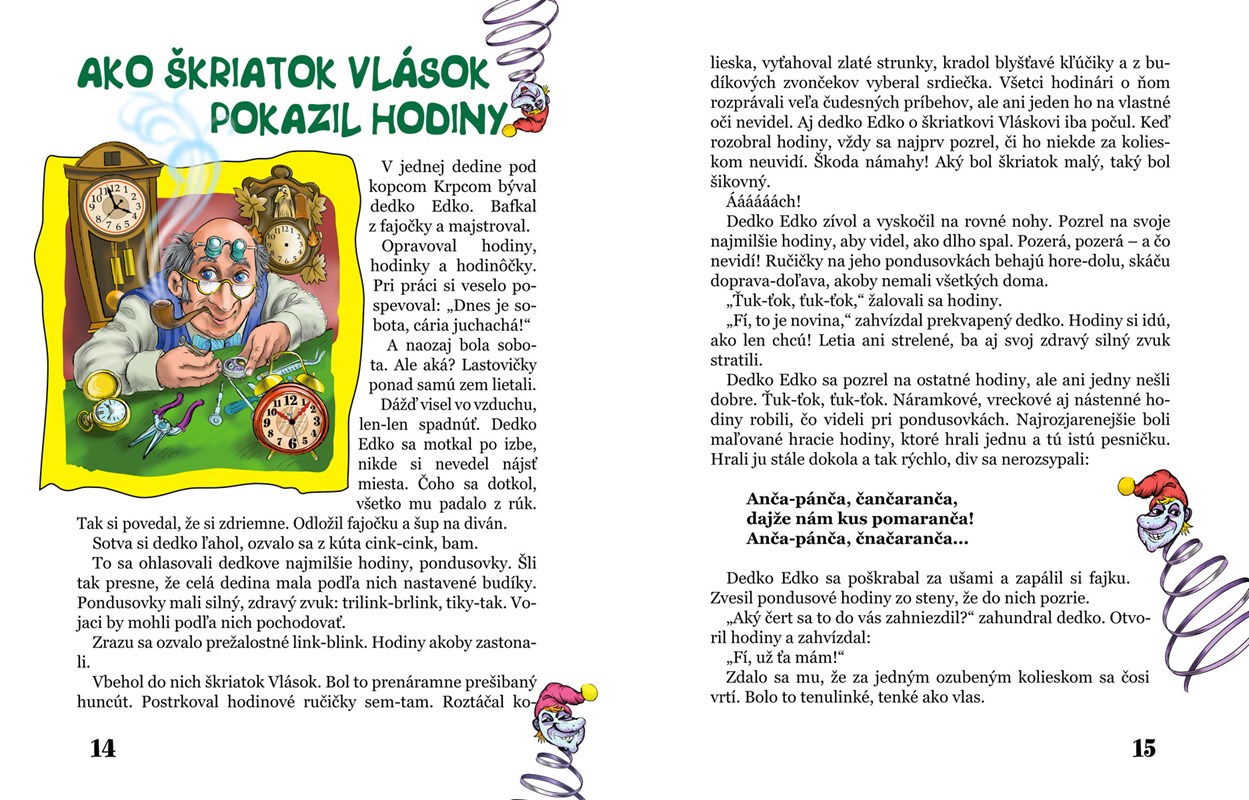 Písmenká, veršíky, veselé príbehy a krásne ilustrácie, to všetko nájdete v knižke pre prváčikov, ktorí sa práve učia spoznávať písmenká, čítať ich a tešiť sa z písaného slova. Zoznámia sa v nej s huncútstvami hodinového škriatka i s vrabcami, ktoré sa chceli podobať na lastovičky. Príjemné čítanie!