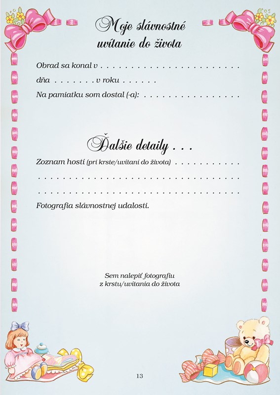 Tento album sa určite stane milou a cennou zbierkou najdôležitejších udalostí vášho dieťatka.
