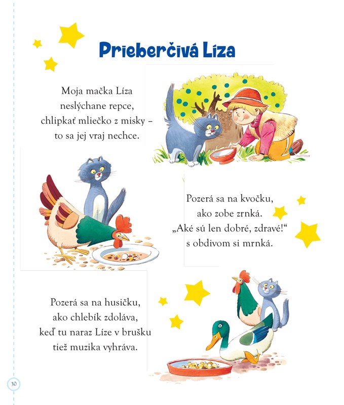 Táto kniha je určená pre deti od 1 roka do 3 rokov. Sú v nej krátke príbehy s jednoduchými slovami i rýmami a vek detí zohľadňujú aj početné rozmerné a jednoduché ilustrácie.