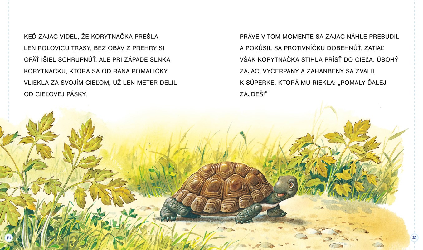 Prečítajte si najznámejšie Ezopove bájky prinášajúce mravné ponaučenie – o mestskej a poľnej myške, zajacovi a korytnačke, mravcovi a kobylke, líške a hrozne či o havranovi a líške. Bájky sprevádzajú roztomilé ilustrácie. Nadčasový pôvab klasických rozprávok v ilustrovanom vydaní pre najmenších čitateľov. 16 krátkych príbehov pre potešenie i zamyslenie, prerozprávaných očami zvieracích protagonistov, ktorí nám v každom príbehu prinášajú vzácne ponaučenie. Veľa zábavy, maličkí!
