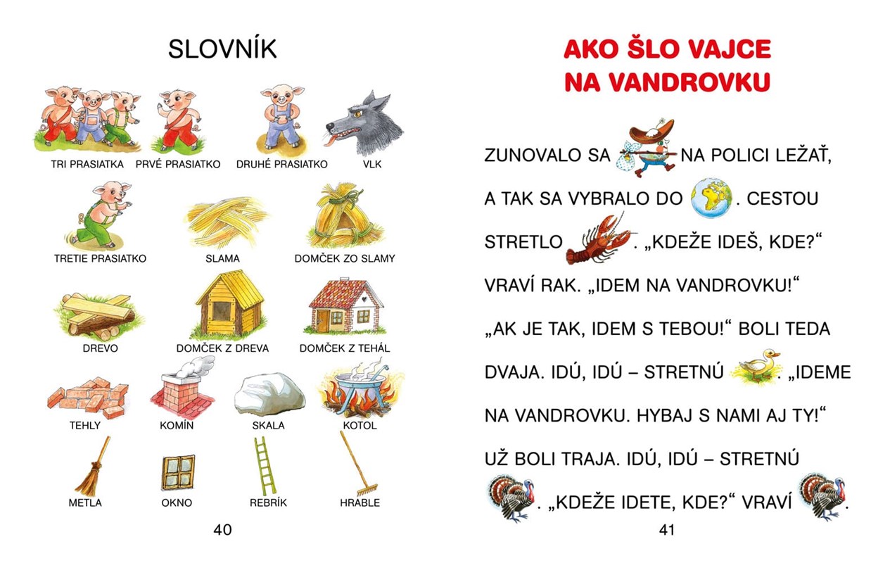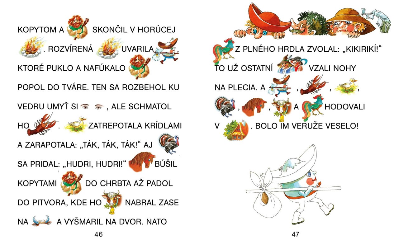 Ozvláštnite deťom čítanie a prispejte k rozvoju ich slovnej zásoby maľovaným čítaním. Knižka v sebe ukrýva najznámejšie i menej známe rozprávky: O stratenej rukavičke, O Červenej čiapočke, O repe, O troch medveďoch, Hrnček, var!, Tri prasiatka, Ako šlo vajce na vandrovku, Janko Hraško, Slamka, uhlík a bôb. Zároveň je takéto čítanie pre deti zábavné a interaktívne.