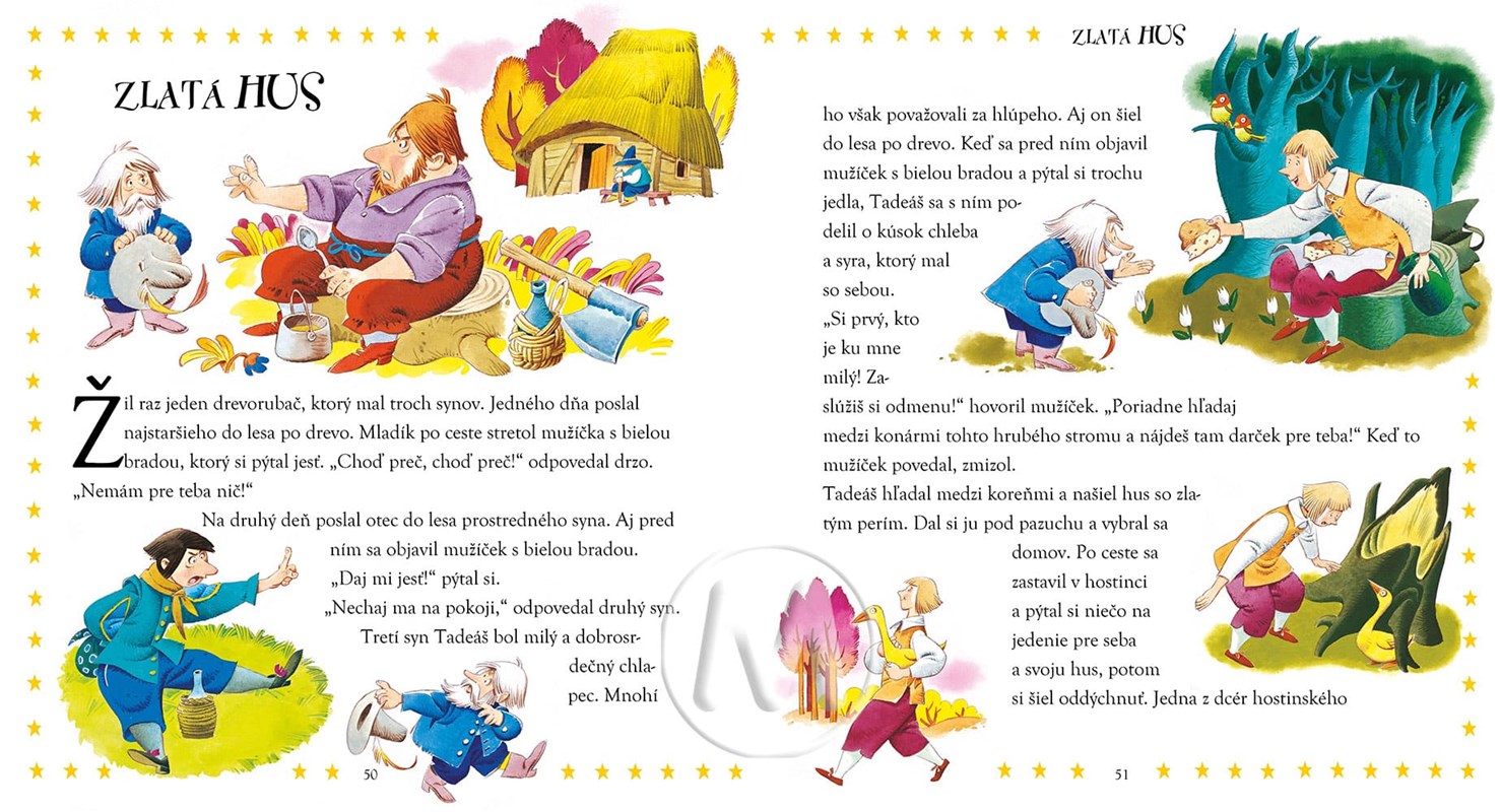 Kde bolo, tam bolo... jedno škaredé káčatko... perníková chalúpka... čarovná fazuľa... namyslený cisár... drevená bábka... zlatá hus a trpaslík s dlhočiznou dlhou bradou! Sedem magických príbehov na večerné čítanie, aby detičky spokojne zaspali a snívali sa im krásne sníčky.